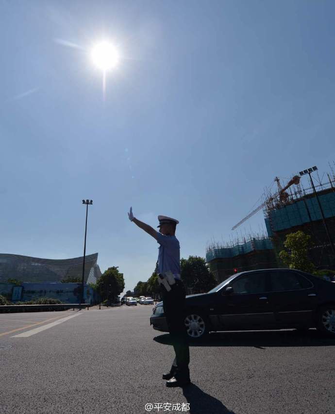 据华西都市报微博消息,2016年7月21日中午11点,成都某高速公路治安卡点的地表温度已接近50℃,一位执勤中的交警中暑晕倒。