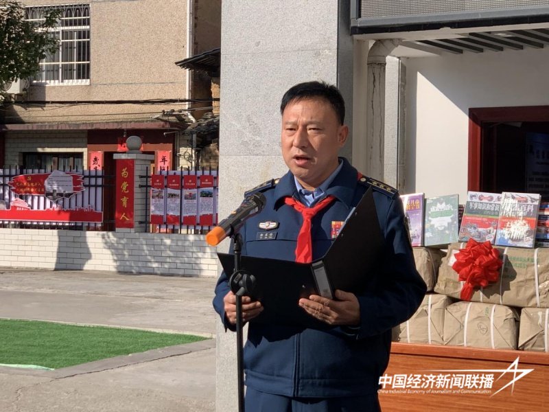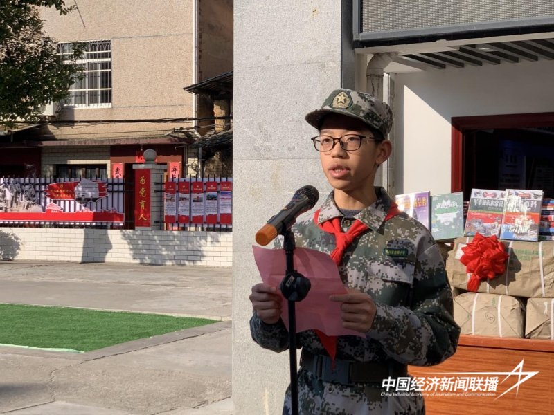 捐赠仪式上,少先队员代表刘涵宇在发言中号召队员们学习军人优良作风,增强国防意识,树立远大理想,将来为建设伟大的祖国贡献力量。