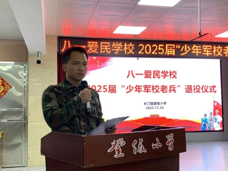 少年军校教官郑佳滨在讲话中回顾了老兵们在少年军校的成长历程,高度赞扬了他们的拼搏精神与显著进步,同时鼓励新兵们以老兵为榜样,传承军人优良作风。