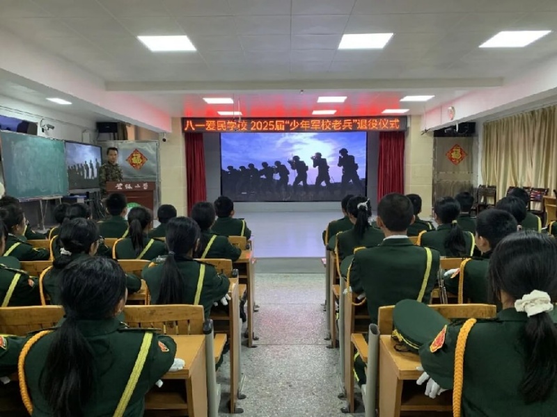 仪式在激昂的国歌声中拉开帷幕,全体师生肃立,齐唱国歌。随后,大屏幕上播放起部队老兵退役视频。视频里,老兵们身姿挺拔,眼中满是不舍与坚定,他们用青春和热血诠释着军人的使命与担当,这些感人的画面深深触动了每一位队员,让他们更懂得了责任与传承的重量。