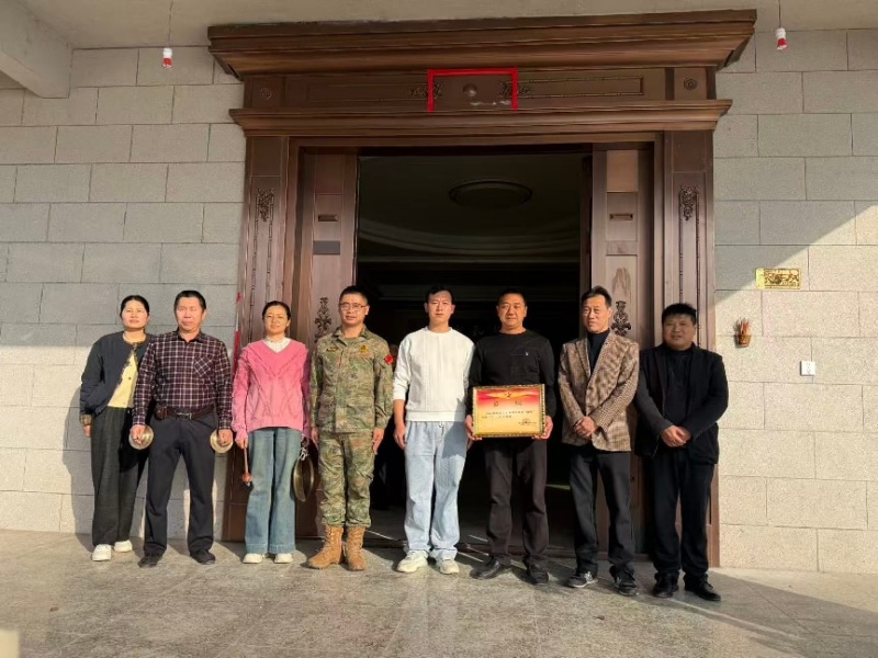 在军属家中,武装部部长胡小明郑重地将“四有优秀士兵”喜报交到休假在家的丘春棋手中,并与丘春棋及其家属亲切交谈。通过交谈得知,丘春棋于2014年怀揣着报国之志毅然入伍,时光匆匆,至今已在部队度过了十多个春秋。在这漫长又充实的军旅生涯中,他始终以高标准严格要求自己,凭借着顽强的意志和出色的表现,一次次崭露头角。在部队中书写着属于自己的荣耀篇章——四次荣获“四有优秀士兵”称号,每一次都是对忠诚、担当、敬业、奉献的生动诠释;无数枚沉甸甸的勋章缀满胸襟,其中那枚熠熠生辉的"极限训练勇士勋章",更是他挑战极限、淬火成钢的铁血见证。从青涩新兵到军中脊梁,他以十年青春热血铸就忠诚警魂。明年,当卸下肩章的那一刻,这段用汗水与荣耀镌刻的军旅记忆,必将化作他人生路上永不褪色的精神丰碑。