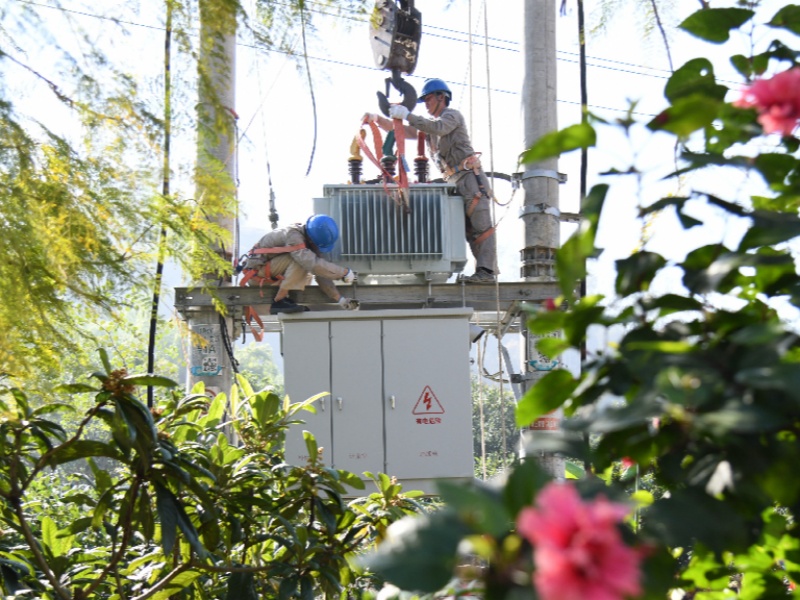 中经联播讯(林建辉 马海彤 通讯员 方为生 方志杰 方诗淇)12月17日,在福建省漳州市云霄县和平乡北柘村,国网云霄县供电公司组织施工队加紧对北柘Ⅱ配变进行更换作业,以保障当地群众在迎峰度冬期间用好电。