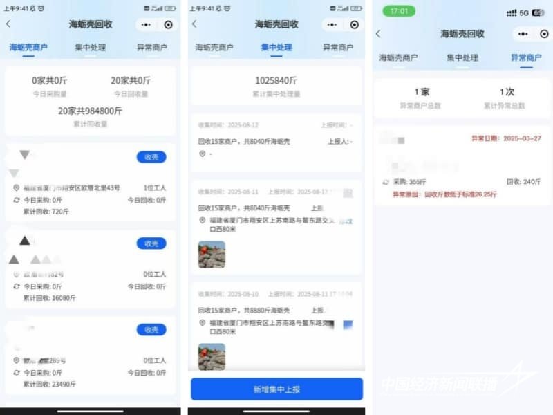 源头登记:“治壳管家”为各商户建立“电子户口本”,每日自动依据上报的海蛎销量换算理论产壳量,并与实时上传的实际收运数据智能比对,实现壳源与去向全程可视化、问题可追溯、责任可界定。