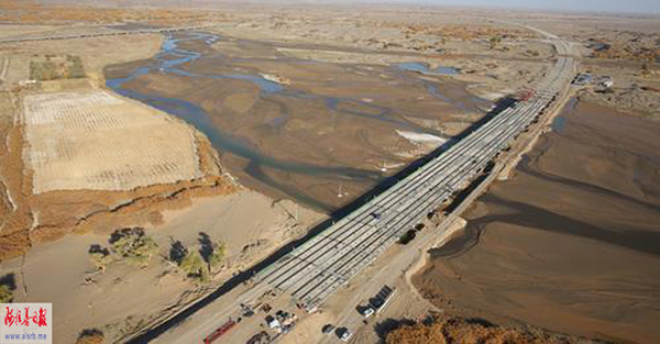 没有路,施工材料进不了工地,施工人员就修建了比高速路还长的施工便道,同时也方便了当地群众。建设者在没有水,没有电,没有通信,没有路,没有人烟的戈壁沙漠。完成了通向文明和进步的高速公路。