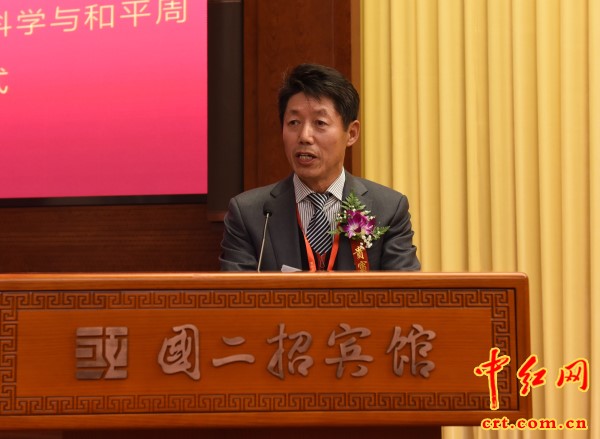 国际科学与和平周中国组委会常务副主任何建民主持大会。(中红网杨建国摄)
