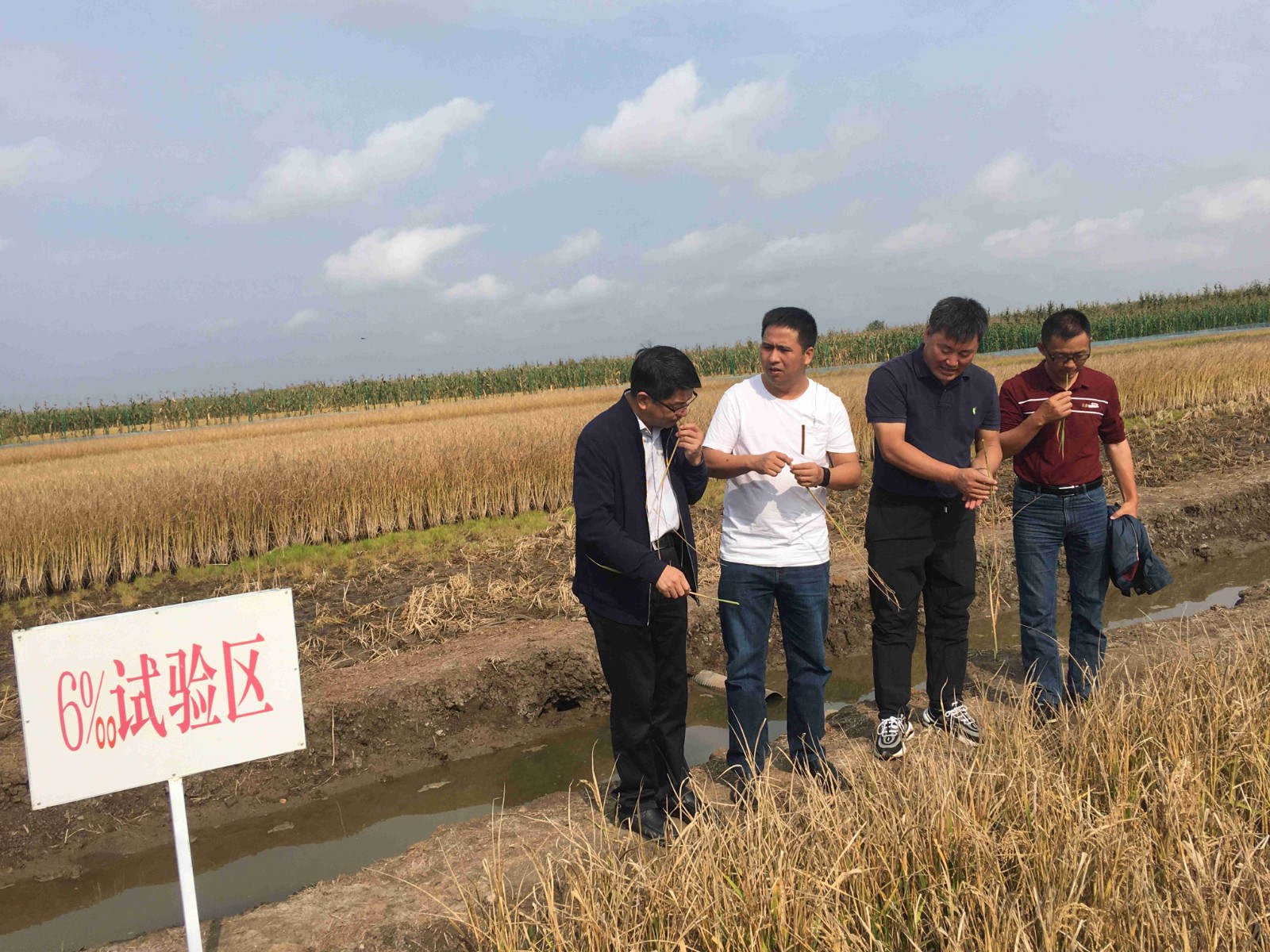 2020年7月8日下午,盘锦市农业农村局副局长郭文强会同辽宁省盐碱地利用研究所所长李振宇带领市农业农村局和省盐碱地所专家对辽宁中聚生态农业科技开发有限公司北方耐盐碱水稻“袁隆平院士试验基地”进行了现场调研。