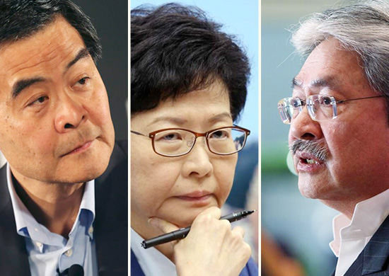 热门人选(从左至右):现任特首梁振英、政务司司长林郑月娥、财政司司长曾俊华