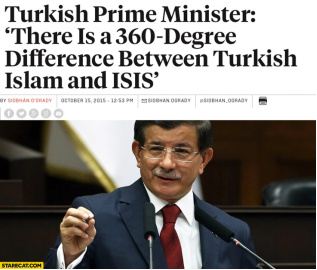 土耳其前总理在任时说:土耳其伊斯兰和ISIS的区别不是180度,而是360度