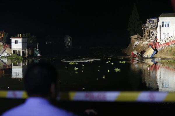 10日上午,湖南省华容县新华垸的治河镇南堤红旗闸管身新老土结合部位发生渗漏,随后险情迅速恶化,最终在10时57分堤身下沉并溃口,滔滔洪水冲入新华垸。截至昨晚9时,约2.36万人已被转移。在抢险救援中,身系安全绳的抢险人员驾驶着载满麻石的卡车驶向溃口,在卡车坠入溃口前跳下卡车,用连车带石的方式封堵溃口。预计溃口复堤在11日下午完成。