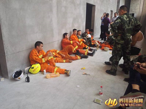截止目前,官方确认此次事故造成6人死亡,4人受伤。图为连夜持续搜救,不少救援人员疲惫不堪。