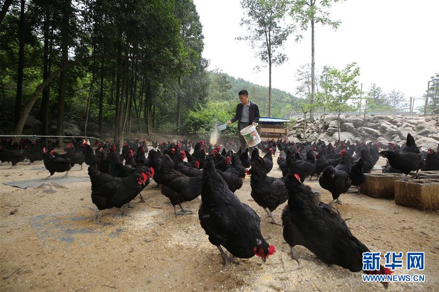 近年来,湖南省张家界市武陵源区索溪峪街道双文村依托当地良好的生态环境和艾草资源优势,大力发展艾草蛋鸡生态养殖产业。农技人员运用艾草、松针、杜仲叶粉等组合配方饲料饲养蛋鸡,产出的鸡蛋具有口感好、蛋清稠、蛋白浓厚细嫩等特点,受到消费者青睐,俏销湖南、湖北、山东、北京等地市场。新华社发(吴勇兵 摄)