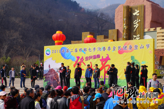 春风送爽,暖阳高照。今天上午,七步沟景区彩旗招展,锣鼓喧天,2018第二届邯郸七步沟春季全民健身登山节开幕仪式在这里举行。来自全国各地近万人登山爱好者参加活动。