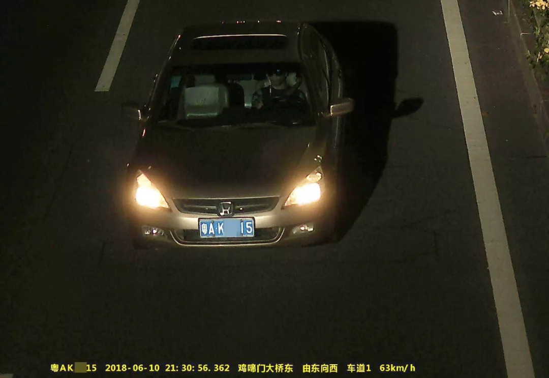 5月30日晚上8时15分,地点还是珠海大道东往西方向鸡啼门大桥路段,周某同样戴着墨镜。▼