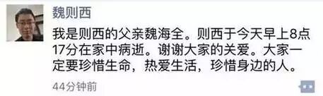 “北京、上海、天津、广州的各大肿瘤医院都说没有希望,让我父母再要一个孩子吧。”魏则西曾写道。