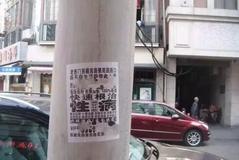 记得若干年前还有个专有名词叫“城市牛皮癣”,从电线杆到公交站台再到老旧小区的楼道走廊,处处可见。除了医疗广告,还有办证刻章、通下水道、重金求子……