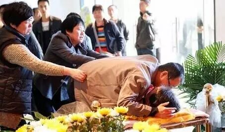 4月13日,陕西咸阳,告别仪式前,魏则西的父亲扑上去抱住儿子。