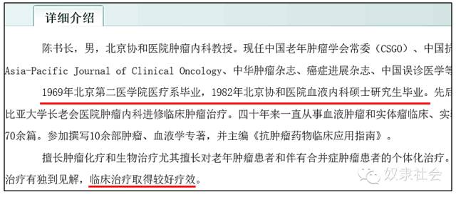 教育背景,专业背景,擅长癌症领域一目了然。另外,大家注意最后一句话“临床治疗取得较好疗效”,这么大咖的专家也只敢用“较好疗效”,那些动则80%,90%治愈率的“专家”是哪里来的?!