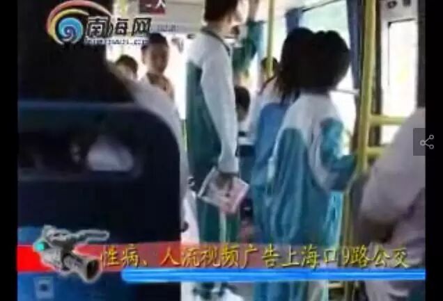 也是出自媒体公开报道,某地的公交车上的性病人流广告……