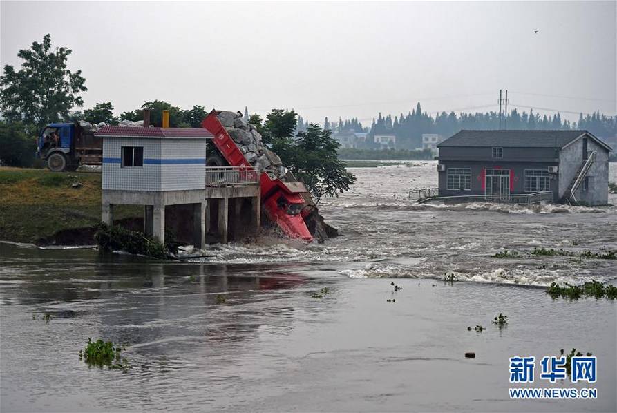 7月10日上午,湖南省华容县新华垸发生重大管涌险情,红旗闸附近出现溃口。危难之际,十几辆满载麻石的卡车在大堤两边一字排开,以连车带石的方式驶入溃口堵住滚滚洪流。这群驾驶员被人们称为“卡车敢死队”。