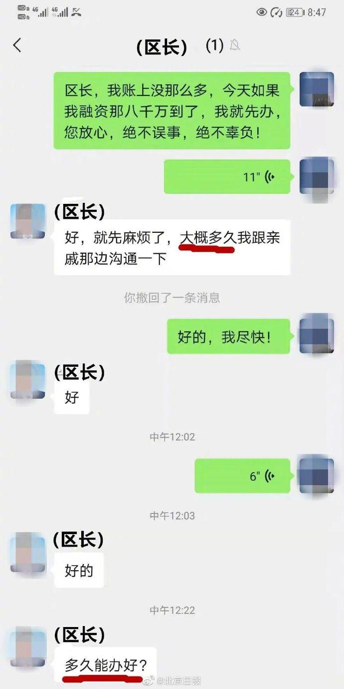 面对企业负责人的迟疑,“领导”称是大额转款有延迟的原因。交流中,频繁出现的“尽快”“马上”“多久”等催促词透出一丝不满。