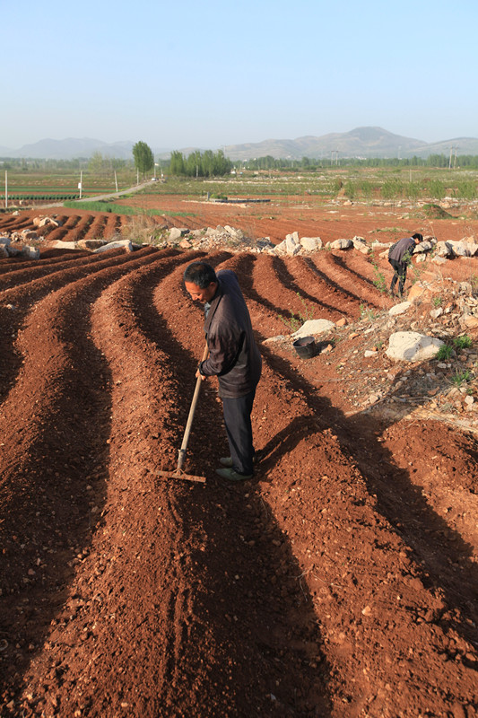 4月19日,山东省临沂市平邑县地方镇农民在田间播种花生、西瓜农作物。