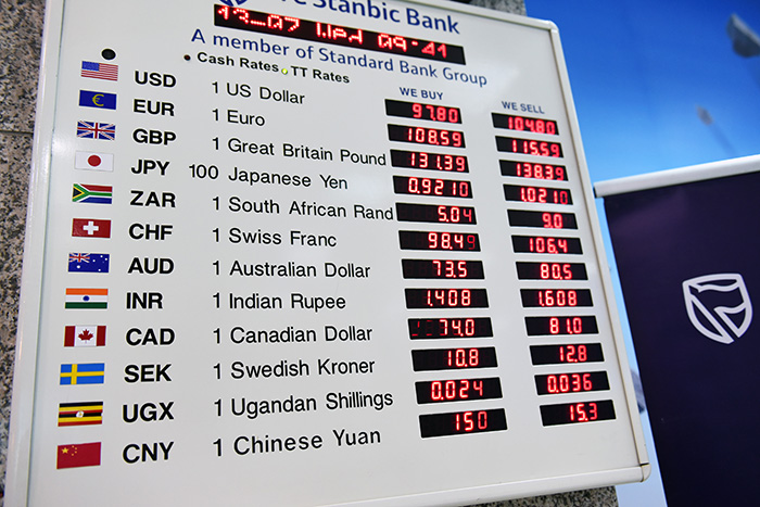 图为7月13日在肯尼亚首都内罗毕标准银行肯尼亚分行总部内拍摄的人民币兑换肯尼亚先令的实时汇率。