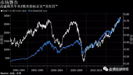 不过一年之后,高盛重新进行了分析,并将“熊市风险指标”重新命名为“牛/熊市风险指标”,结果显示美股熊市风险高出一年前近10%,远远高出2000年和2007年崩盘前的水平。该指标显示,目前主观崩盘几率达到约75%,已进入“红线”区域,创10年来新高。高盛称,“我们的牛/熊指标正闪烁着红色。”