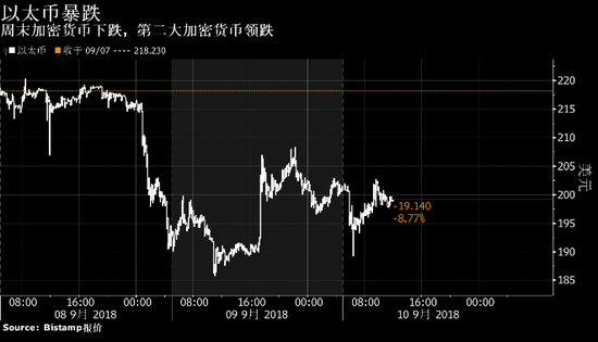 新浪美股讯 北京时间10日彭博报道,身处熊市的加密货币跌至10个月新低,最大的竞争对手以太币领跌。