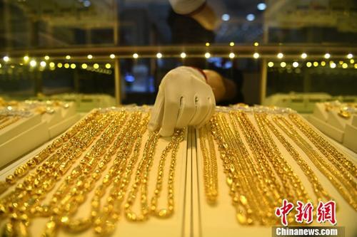 图为一金店内工作人员正在整理黄金饰品。中新社记者 陈超 摄