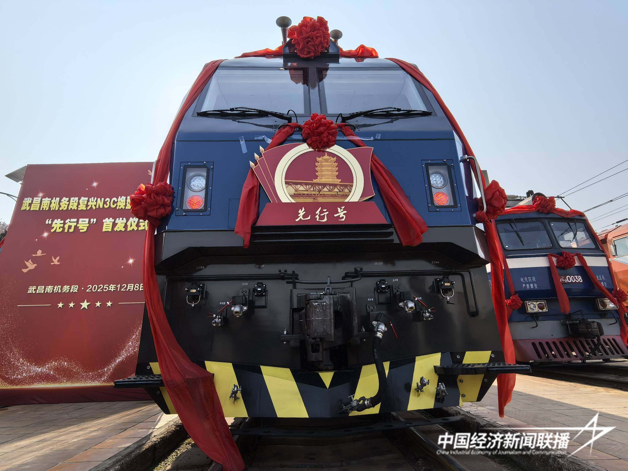 中经联播12月8日武汉讯(史伟 通讯员武铁宣 任瑶 王关屹)今天上午11时左右,中国铁路武汉局集团有限公司武昌南机务段内,15台复兴号FXN3C型机车身披"彩带"列阵而立,一场承载百年传承与时代使命的机车换型暨党内品牌"先行号"首发仪式在此举行。随着复兴N3C0111号机车的一声长鸣,这个拥有111年历史的机务段,正式开启"复兴号时代",逐步替代服役多年的东风8型机车,书写装备升级与党建引领融合发展的新篇章。
