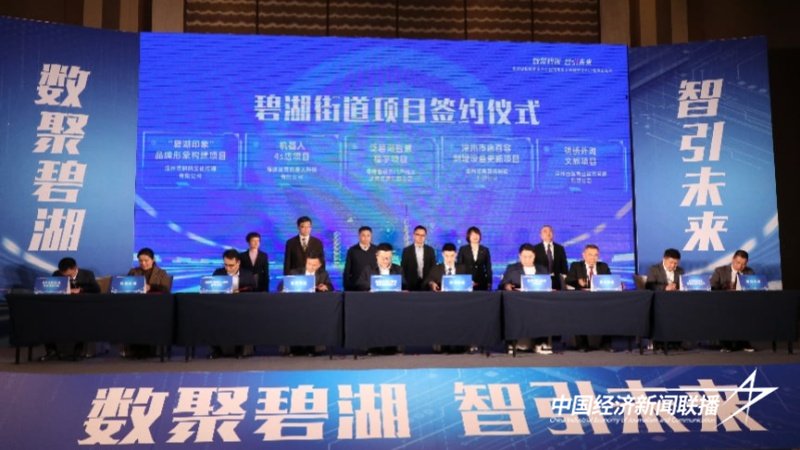 会上,碧湖街道蒋威作园区招商推介,详细介绍了园区的区位优势、服务平台与相关创新举措。招商大使聘任仪式环节,陈田玲、办事处主任杨俊川为9位招商大使颁发聘任书;在区领导的见证下,碧湖街道签约代表先后与漳州市鹤鸣文化传媒有限公司、福建晟育机器人科技有限公司、福建省政务门户网站运营管理有限公司、漳州市惠百容制罐有限公司、漳州西溪商业运营管理有限公司5家企业签订合作协议,涵盖泛碧湖智慧楼宇、设备更新、机器人4S店、文旅、品牌形象构建等多个重点领域。