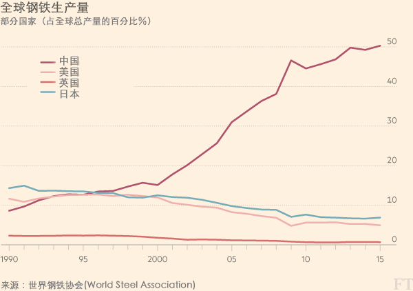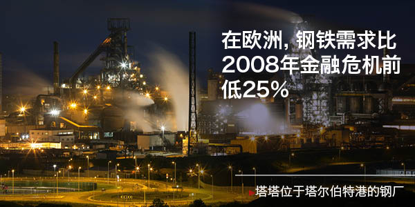“金融危机过后,(钢铁业)最初随着中国的增长走出困境;中国吸收了大量原材料,然后是钢铁,”行业顾问克里斯托弗•博曼说,“因为中国变得太巨大了,当中国打喷嚏的时候,世界其他地方就得了肺炎。可以说中国的低迷对钢铁业的冲击大过对其他任何行业的冲击。”