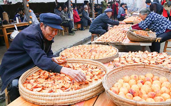 当日,山东沂蒙山旅游景区举办“柿子文化节”,展示当地传统的柿饼加工工艺,邀请游客品尝柿子,并体验手工制作柿饼。
