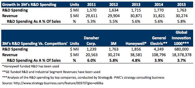 如今,3M公司已经在60多个国家和地区设分支机构,全球员工接近9万人,年营业额超过300亿美元的世界500强企业。福布斯网站指出,3M公司的一个显著优势在于,其研发(R&D)支出占收入的比例一直很高,2011年为5.3%,到了2015年则达到5.8%。