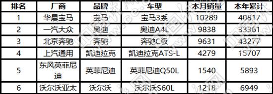 2017年4月及累计高档B级销量统计(单位:辆) 中国经济网制表