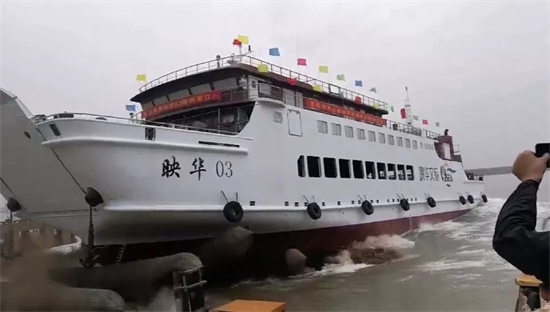 【中国经济新闻联播讯 记者 冯勋明】新成员,新动能,新力量!5月28日,随着船舶徐徐入水荡起的层层浪花,由烟台派格船舶设计有限公司设计,湖北省鄂州市光大造船股份有限公司建造的“映华03”、“映华05”两艘豪华滚装客船成功下水,全场响起热烈的欢呼声,为“映华03”、“映华05”的顺利下水喝彩!
