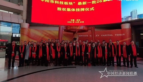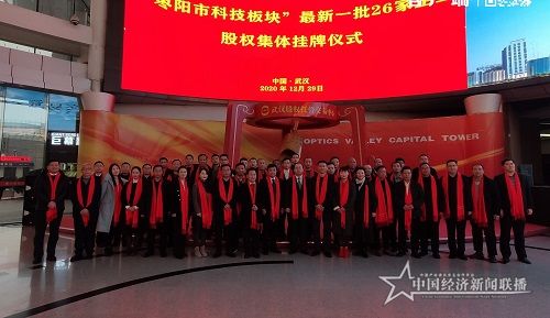 【中经联播12月29日武汉讯】12月29日上午,“枣阳市科技板块”专场挂牌仪式在武汉股权托管交易中心举行,26家企业集体鸣钟、挂牌开市,至此,襄阳在四板挂牌企业达到558家。枣阳市委副书记、市长武义泉,市委常委、常务副市长孙襄林,武汉股权托管交易中心总经理张京念等相关负责人出席会议。