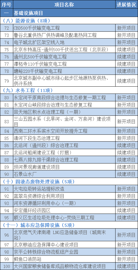 100个重大基础设施项目