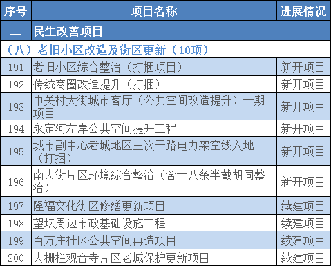 六是推进老旧小区综合整治,推动传统商圈提升改造,不断改善居民生活环境,安排老旧小区改造及街区更新项目10个。