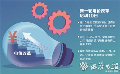 据《证券日报》记者不完全梳理,新一轮电价改革启动10日(截至记者发稿),逾10省份已积极行动,燃煤发电上网电价市场化改革正在各地有序展开。其中,山东、江苏、贵州、安徽等地电力市场成交价均较基准电价上浮超19%;南方5省份以及甘肃、山西、江西、宁夏等地则加速实现煤电市场化交易。