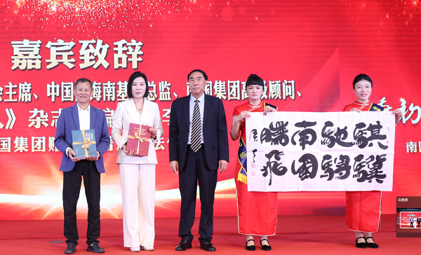 会上,海南省新闻界书画家协会主席、中国网海南基地总监、南国集团高级顾问李笑天向刘汉惜董事长与徐国华董事长赠送《“南国杯”专题书法作品集》及题有“南国腾飞,骐骥驰骋”的贺年书法作品,以笔墨丹青传递诚挚祝愿。