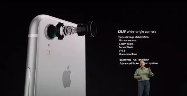 iPhone Xr采用铝合金中框加双面玻璃的设计,正面是大家熟悉的刘海屏,而背面是单摄设计。