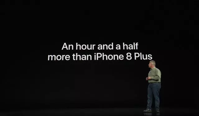 续航方面,按照惯例苹果没有在发布会上公布电池容量,官方表示在同等使用强度下,iPhone Xs的续航要比iPhone X多半小时;而iPhone Xs Max的续航表现会比iPhone X多一个半小时。