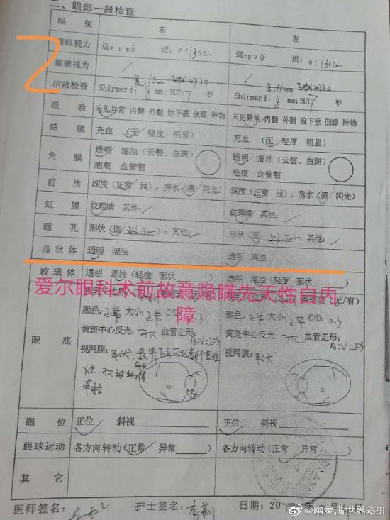 2爱尔故意隐瞒患者自身病情(隐瞒我有先天性白内障)