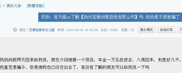 尽管宝缘的宣传堪称出色,但社会的质疑声还是不断。 每个月10%的利息回报这是不可想象的,公司投资什么项目能有这样的利润来支撑返利?