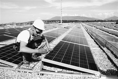 2016年3月,英利在多米尼加的一座太阳能光伏电站项目现场,当地施工人员正在进行组件安装测试。英利集团供图