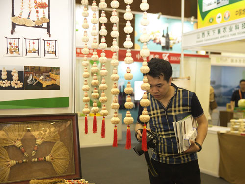 本次参展的13件地理标志产品分别产自内蒙古、浙江、山西、宁夏、山东、吉林等省区。来自内蒙古的巴林左旗笤帚苗子天性柔韧,色泽金黄,粗细均匀,对水和养分要求很低,适合在贫瘠的山坡旱地上种植,是当地历史悠久的农作物。自古以来,巴林左旗农民把自然晾干的笤帚苗编织成笤帚等生活用品,热销中国北方城乡,并出口到韩国、日本以及东南亚、台湾地区。