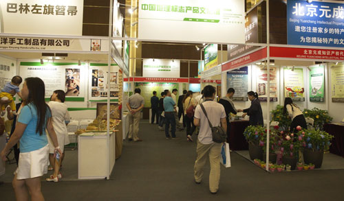 在第四届中国(北京)国际服务贸易交易会上,巴林左旗笤帚、巴林左旗毛毛谷小米、天尊贡芽绿茶、鸿茅药酒、桐庐雪水云绿茶等13件中国地理标志产品,首次组团亮相顶级国际展会,成为本届京交会的新亮点。