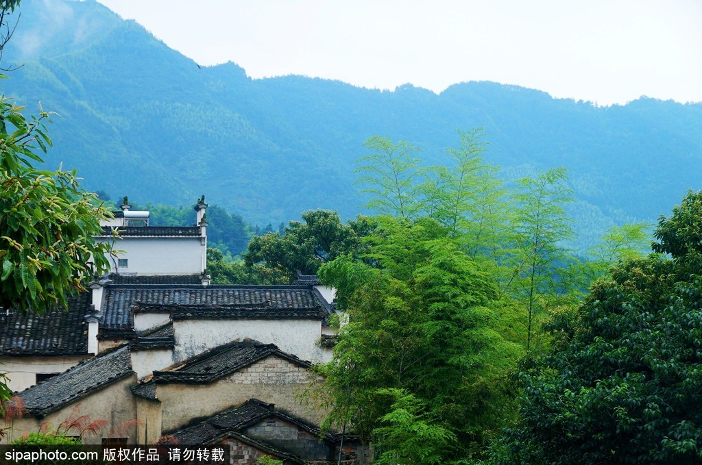 安徽省黟县宏村镇塔川村,S218省道穿过。夏日的道路两旁,各种林木郁郁葱葱。绿油油的林木中,还“藏着”不少粉墙黛瓦的徽派民居,宛若油画。