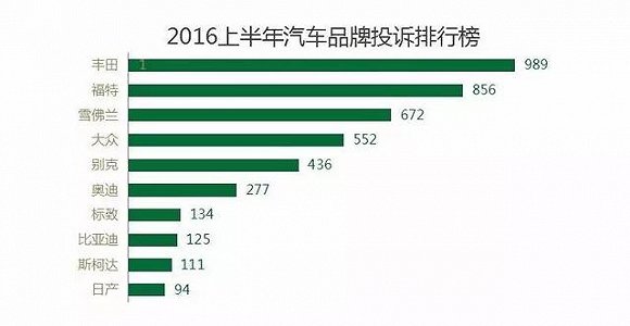 今年上半年,各大汽车品牌中,丰田以989例的投诉量高居榜首。关于丰田“折桂”,车聚君已经在第一季度投诉排行榜里感慨过:“开不坏的丰田,修不好的XX”何在?。